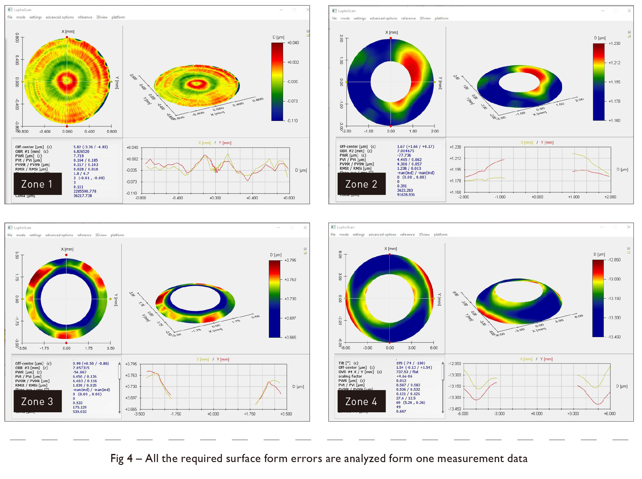 环焦面镜片是通过模压成型技术对镜片进行大批量生产,快速而精确地测量和分析环焦面镜片上每个区域的面形,对镜片的质量控制具有关键性的作用。
