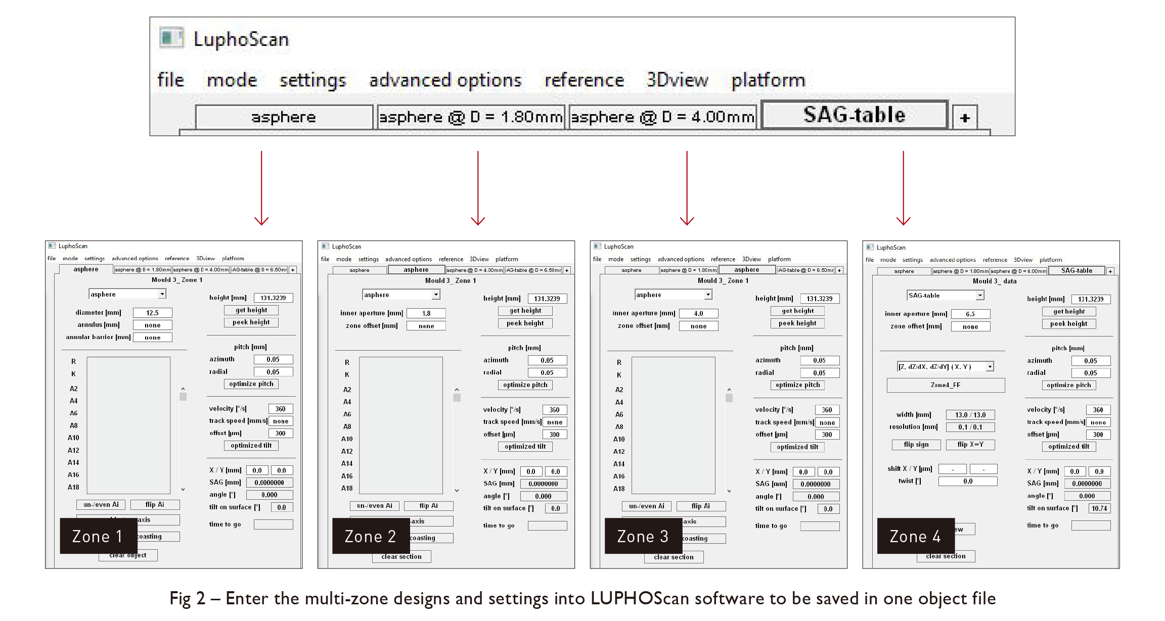 在LUPHOScan软件中输入每个区域的设计方程和测量设置,保存在同一个文件中。
